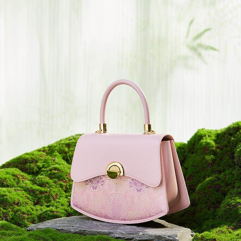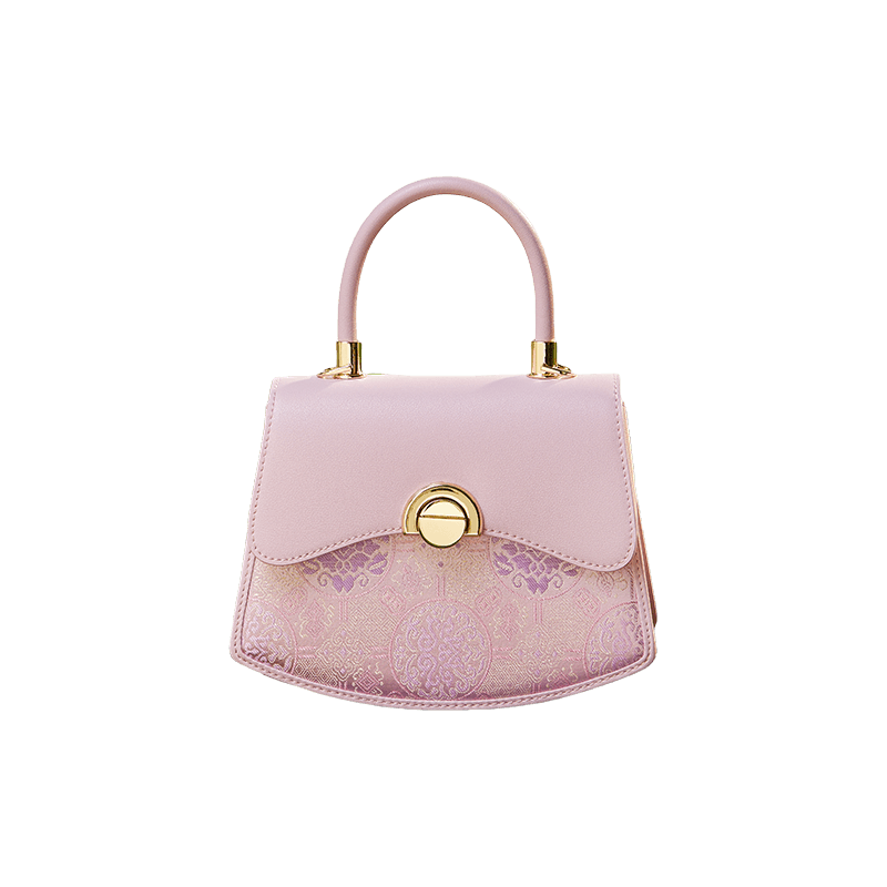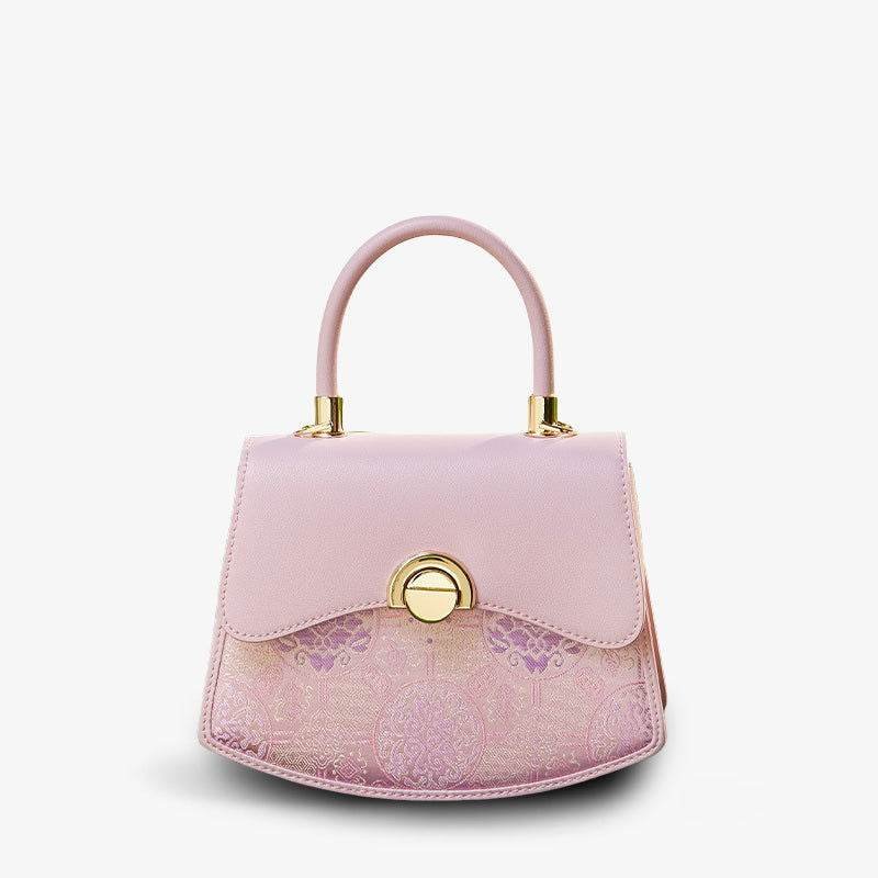 Brocade Mulberry Silk Bag Powder Pink Floral Designer Handbag