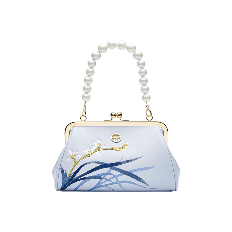 Be the first to review “Embroidery Leather Blue Chain Kiss Lock Clutch Handbag Orchid”