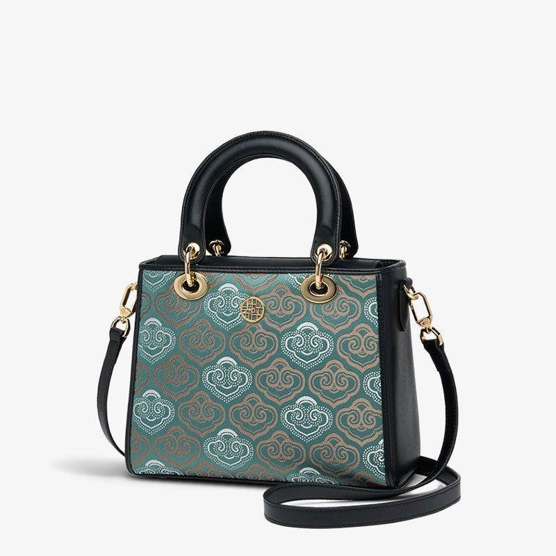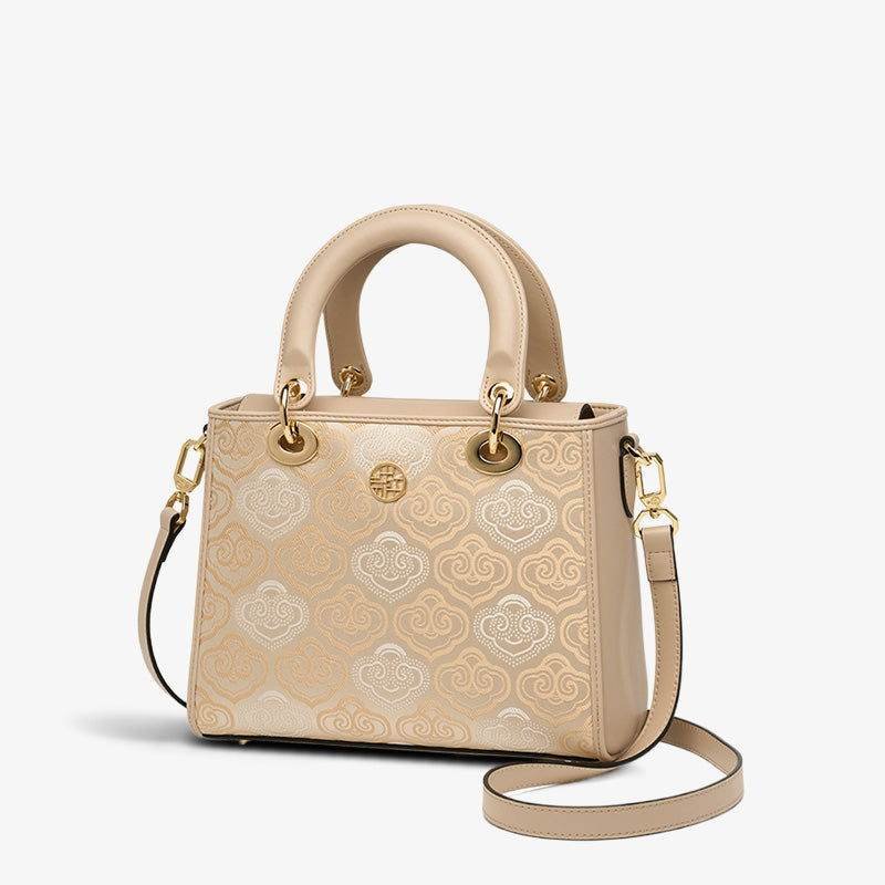Embroidery Leather Crossbody Bag Auspicious Clouds Handbag