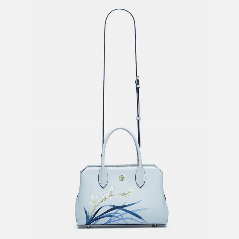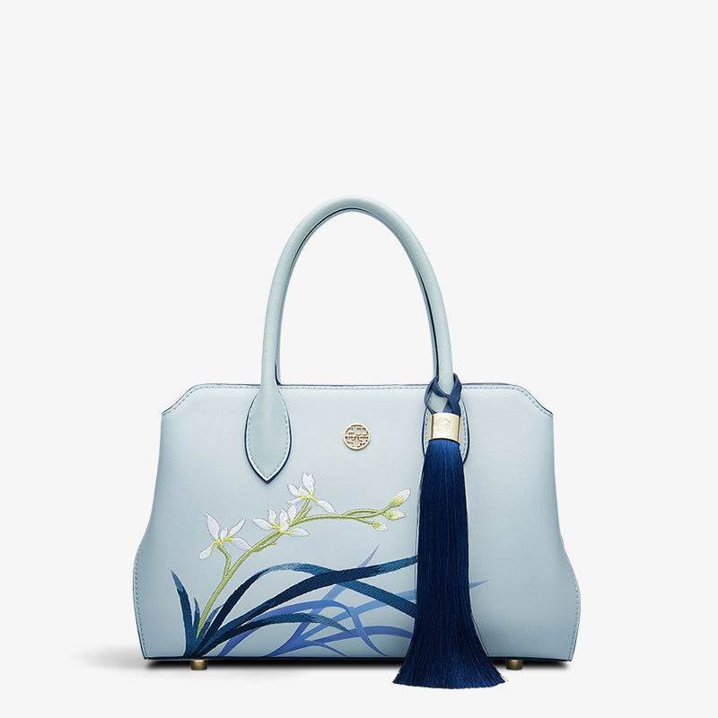 Embroidery Leather Crossbody Tote Bag Blue Orchid Handbag