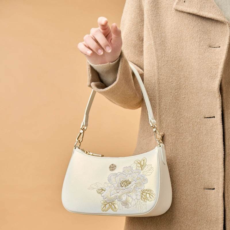 Be the first to review “Embroidery Leather Red Shoulder Bag Peony Women’s Hobo Handbag”