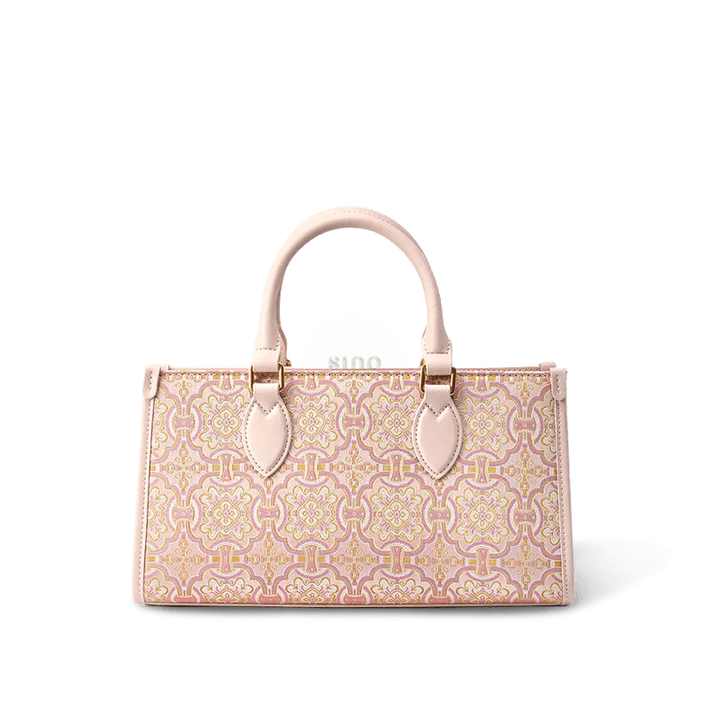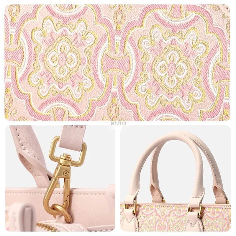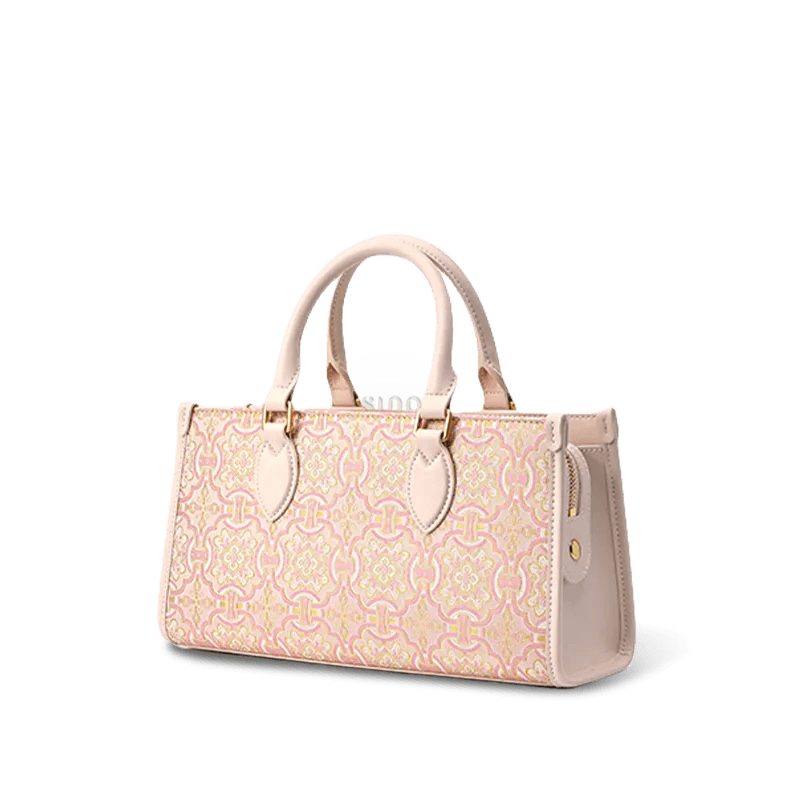 Song Brocade Leather Handbag – Pink & Gold DingSheng Motif